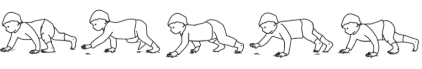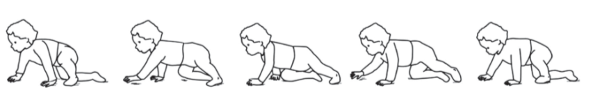 • Homolateral: Se avanza con una mano y rodilla del mismo lado y luego del otro lado. El peso se va desplazando de forma lateral.
